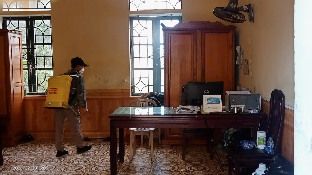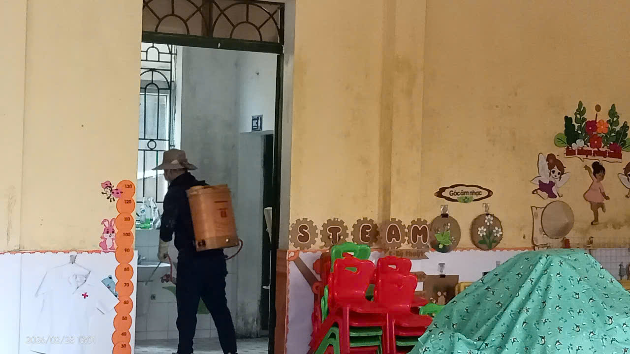 Nhằm đảm bảo môi trường học tập an toàn và phòng chống các bệnh do muỗi truyền như sốt xuất huyết, ngày 28/02/2026 nhà trường đã tiến hành phun thuốc diệt muỗi trong toàn bộ khuôn viên trường. Việc phun thuốc được thực hiện theo đúng quy trình, đảm bảo an toàn cho trẻ em, giáo viên và nhân viên trong trường.