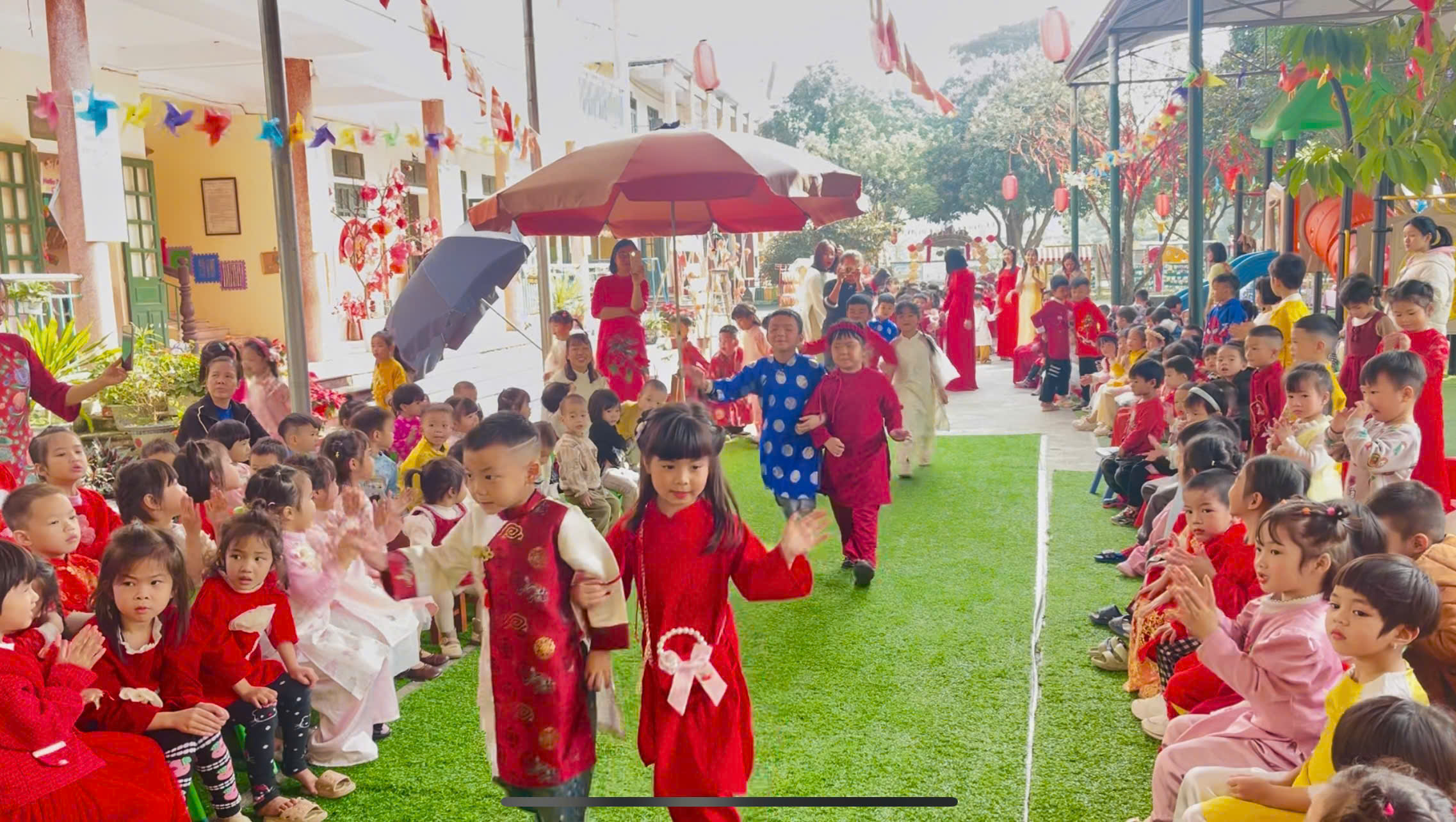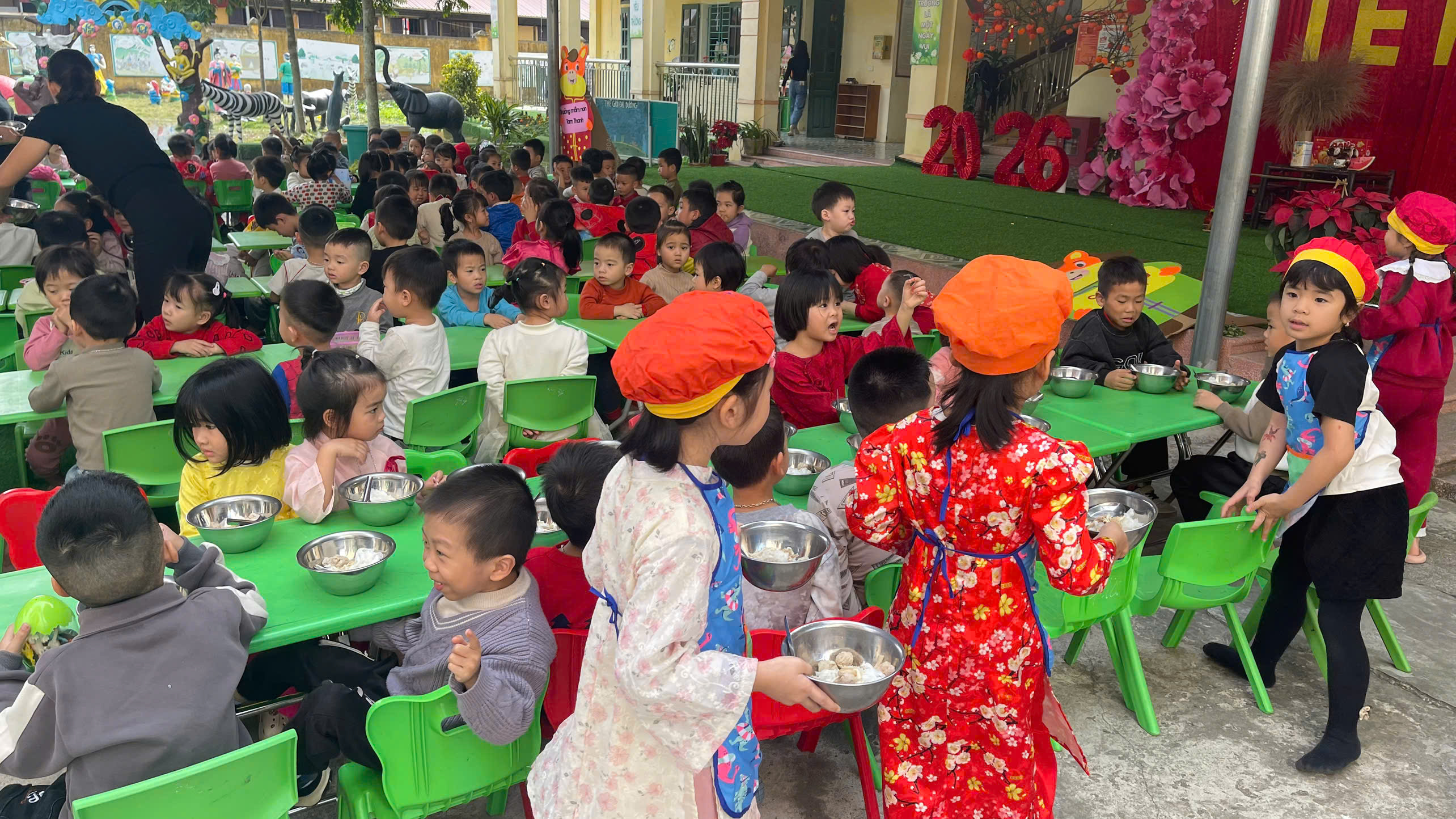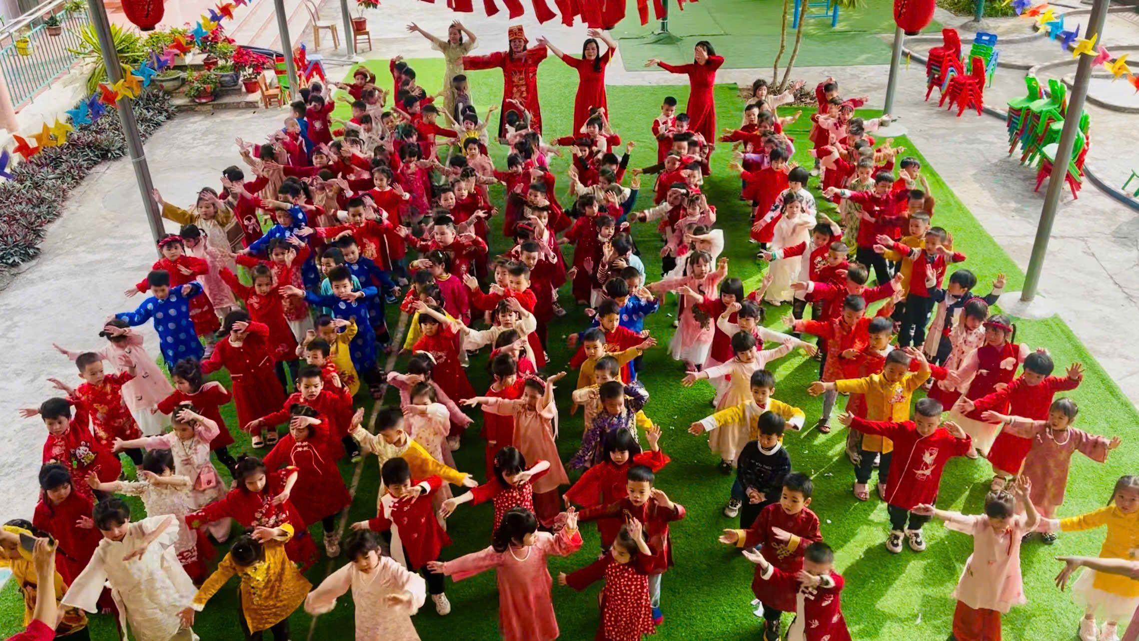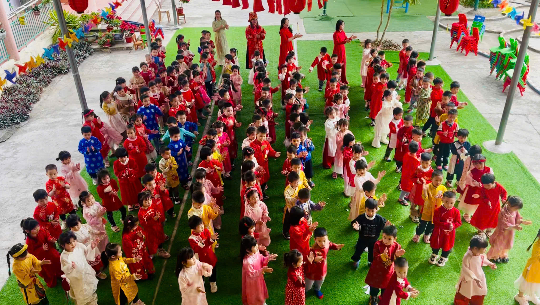 Bên cạnh đó, nhà trường luôn chú trọng đến công tác đảm bảo an toàn cho trẻ trong suốt quá trình tổ chức các hoạt động; phối hợp chặt chẽ với phụ huynh trong việc chuẩn bị trang phục, nguyên vật liệu và giáo dục trẻ giữ gìn nề nếp, thói quen tốt trong dịp Tết.